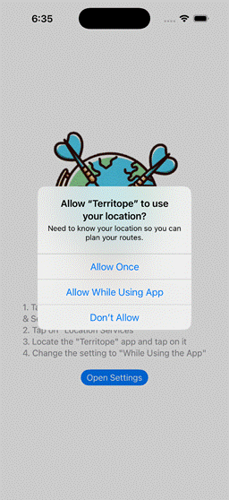 initial view will request access to your location. Your