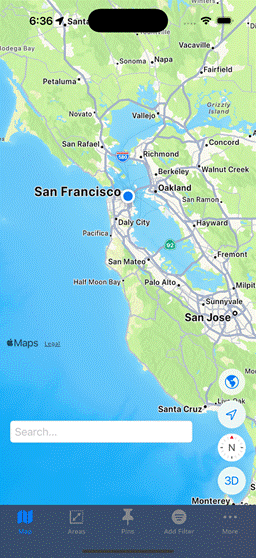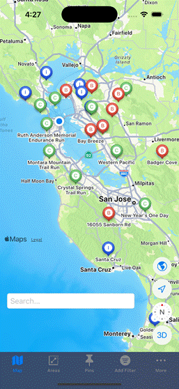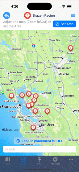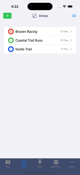 Your Points of Interest: Add "Pins" to your Areas by simply tapping