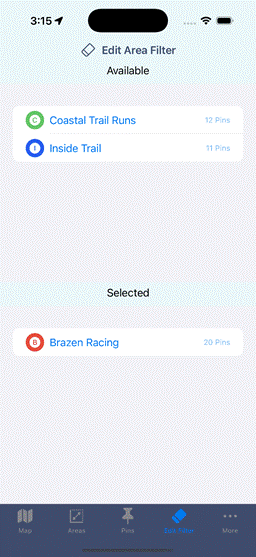 or more areas to use as a filter by tapping on the area(s) in the Available