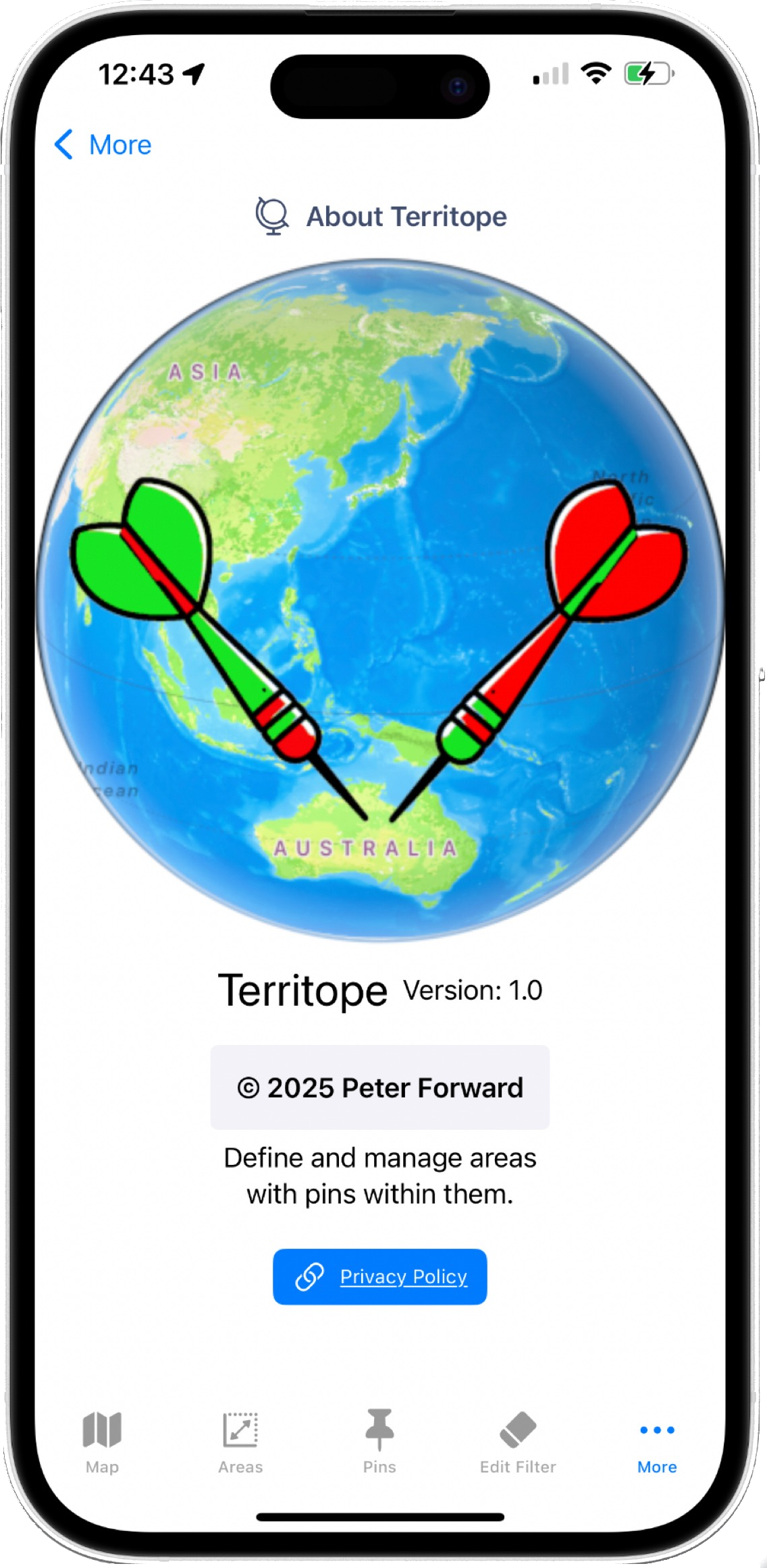 Define custom regions ("Areas") and pinpoint key locations ("Pins") within them. Whether you're planning a road trip, documenting local hotspots, or collaborating on a project, Territope empowers you to map your world with ease.